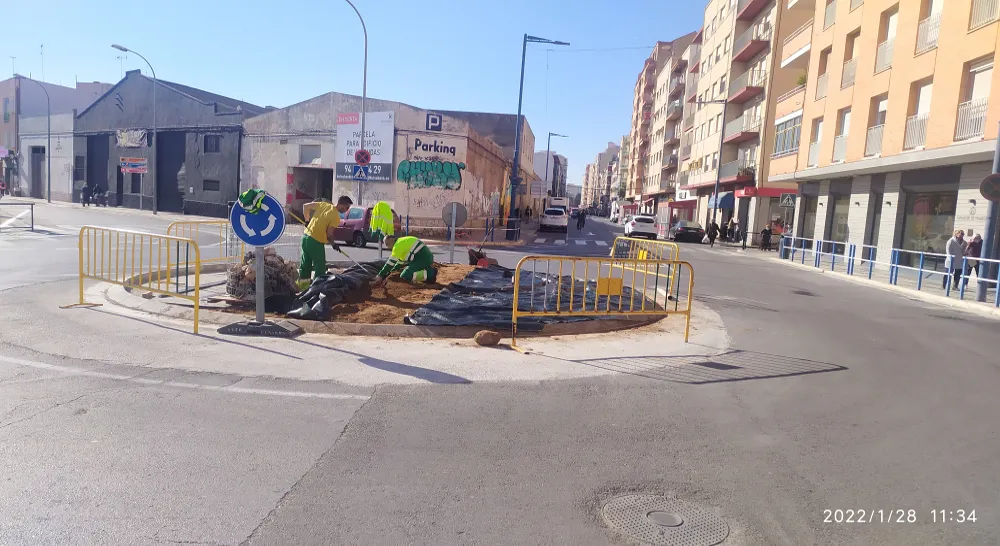 El Ayuntamiento de Vinaròs reacondiciona la rotonda en el cruce de Avenida Barcelona y Avenida Libertad.