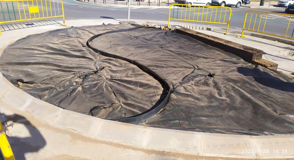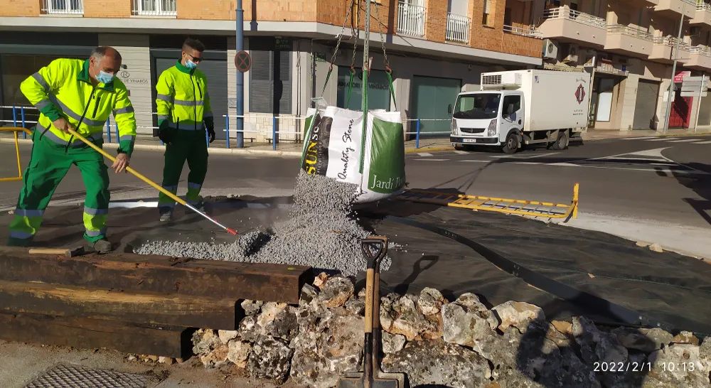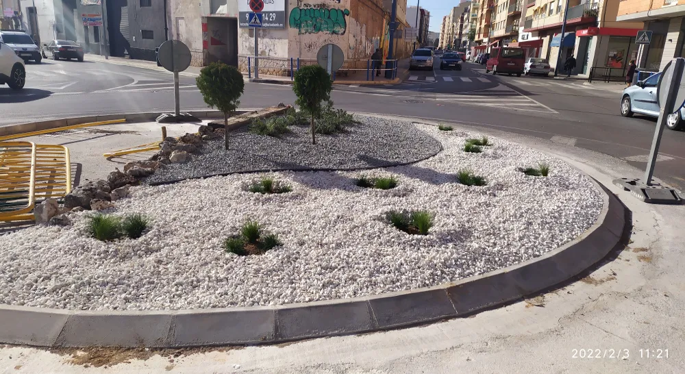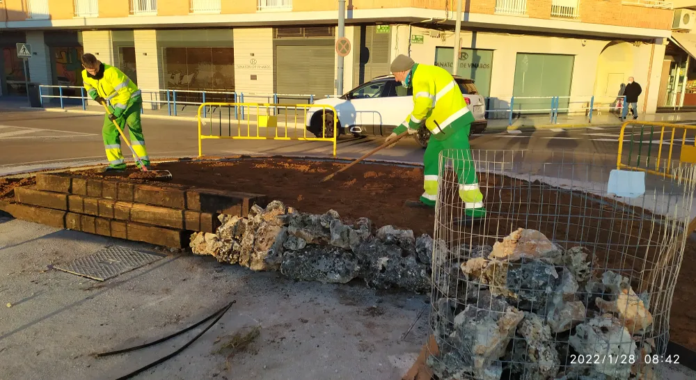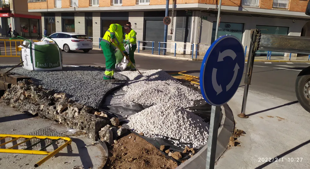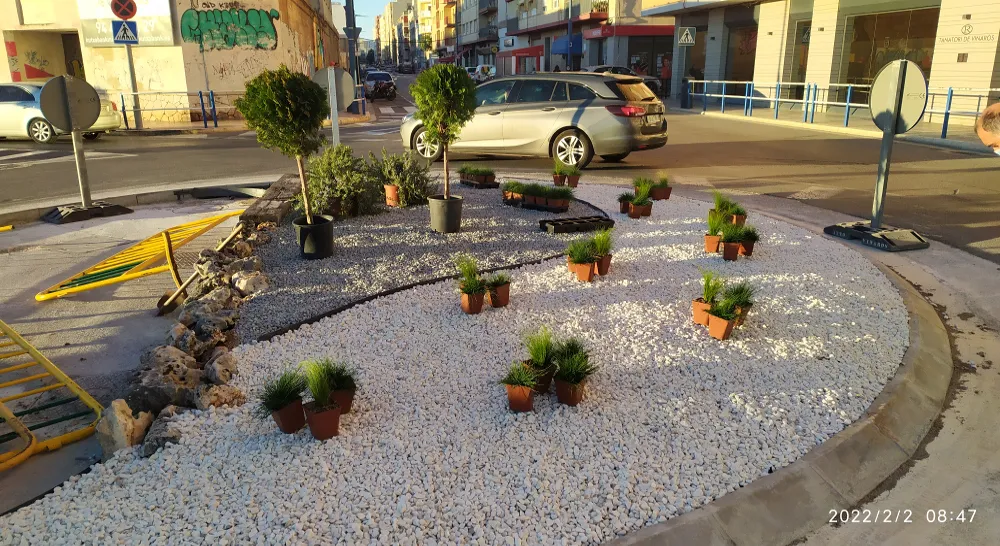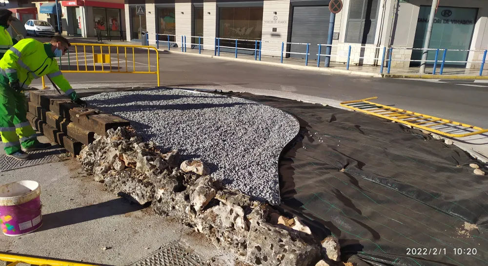 Los trabajos de reacondicionamiento de la rotonda se han llevado a cabo de forma coordinada entre la Brigada Municipal y Citrics Roquetes, partiendo de limitaciones para el diseño al asentarse la rotonda directamente sobre pavimento y presentar casi la mitad de la superficie ocupada por arquetas de servicios cuya accesibilidad debe garantizarse.